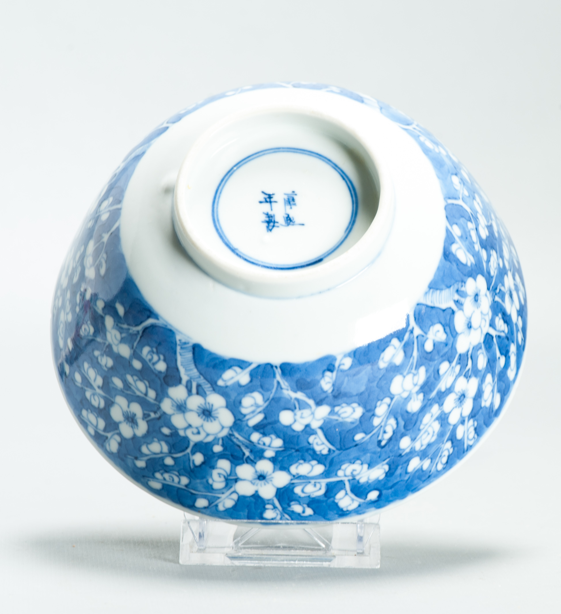 Antique 19C Chinese Marked Porcelain Bowl China Qing period Crackled Ice Prunus