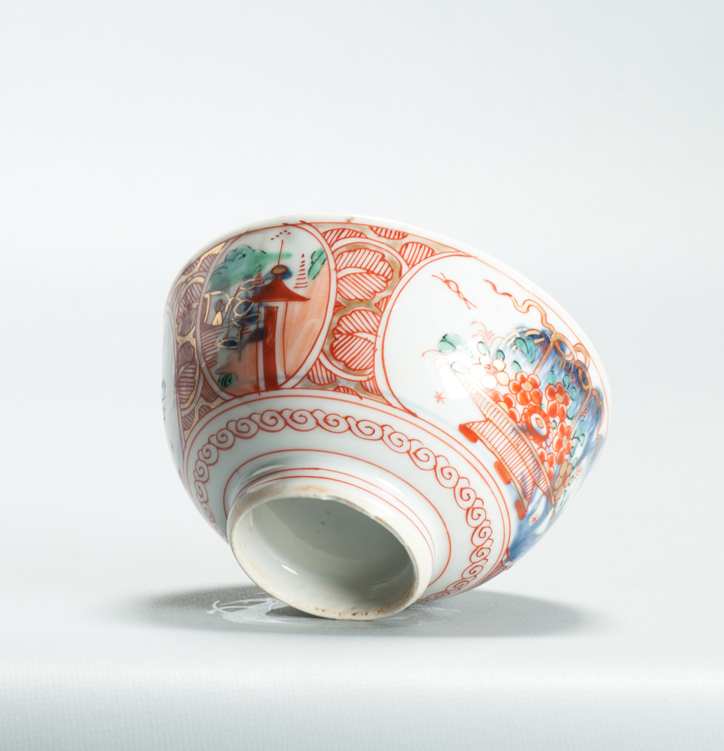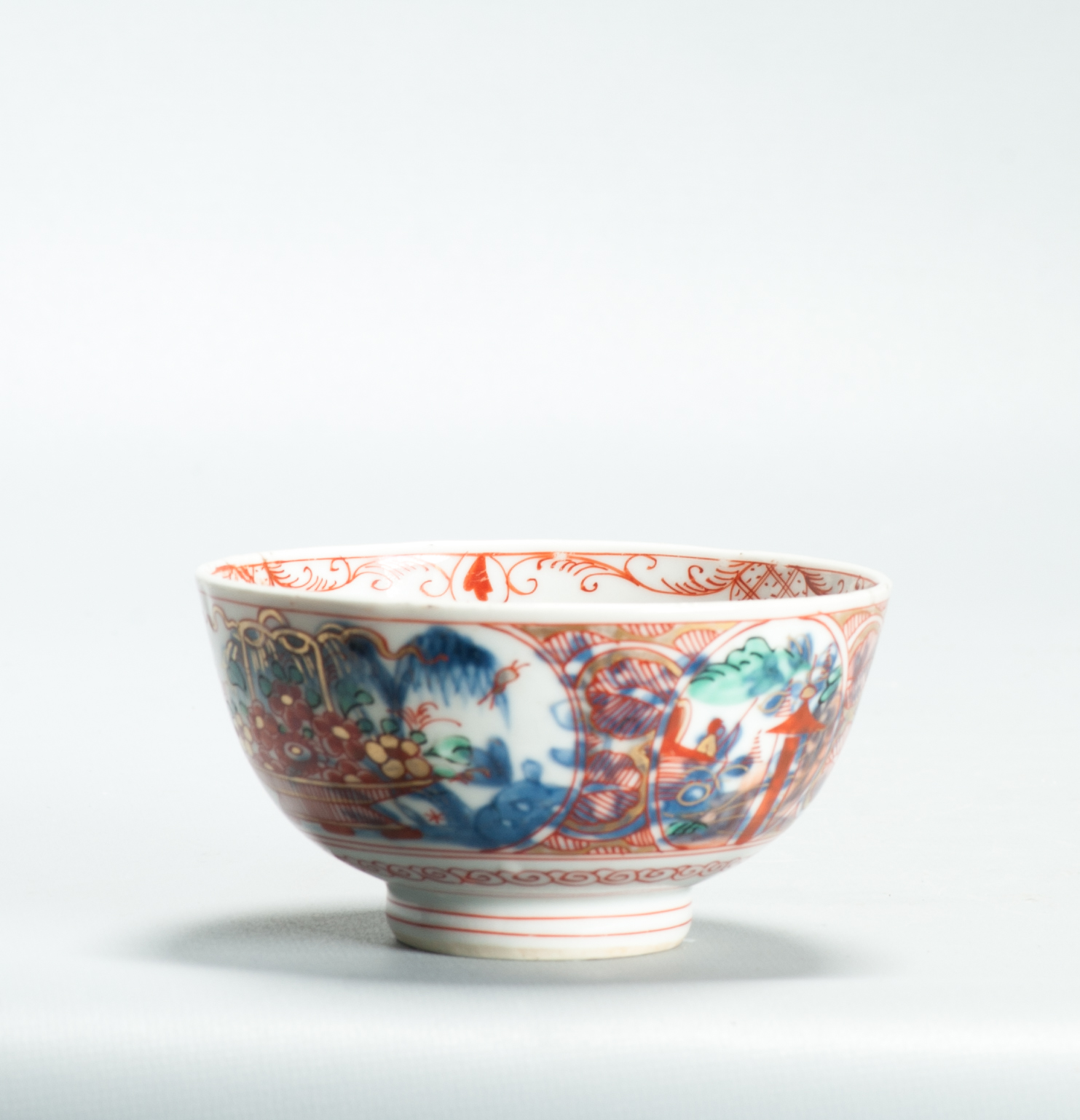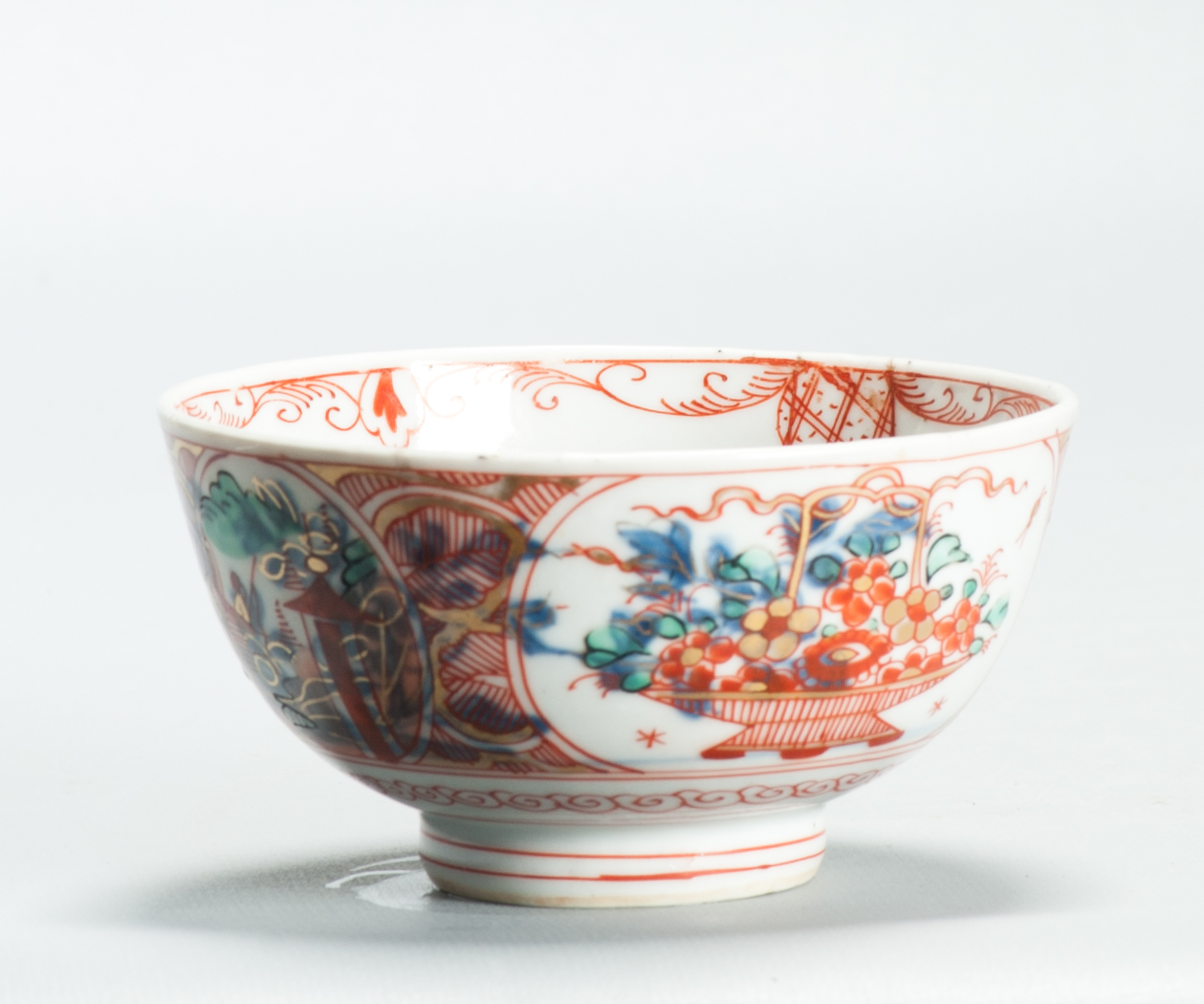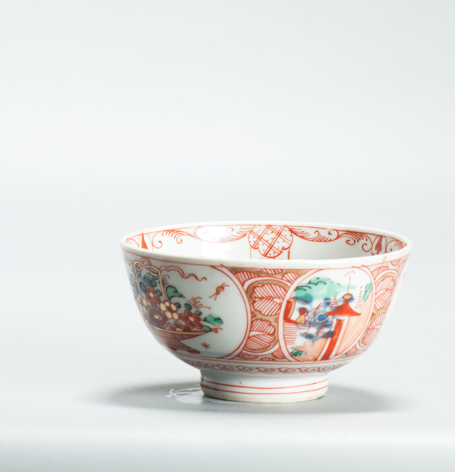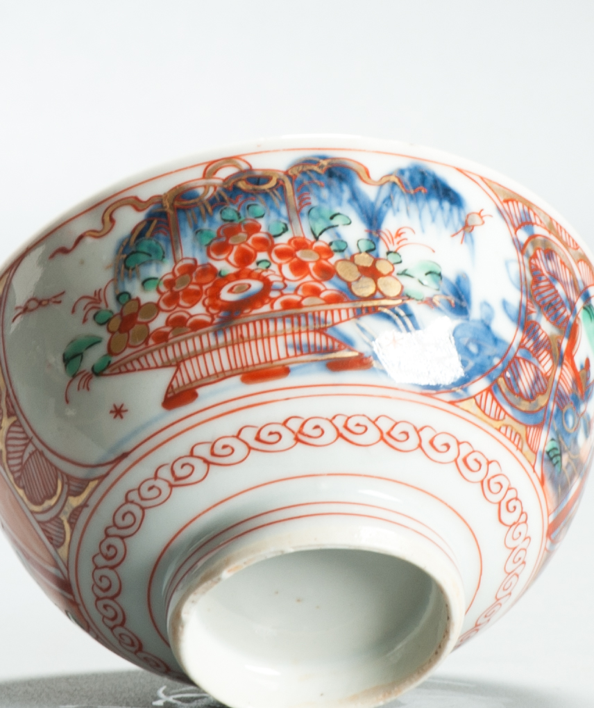 Later decorated in Holland with flower baskets and pagodes.
