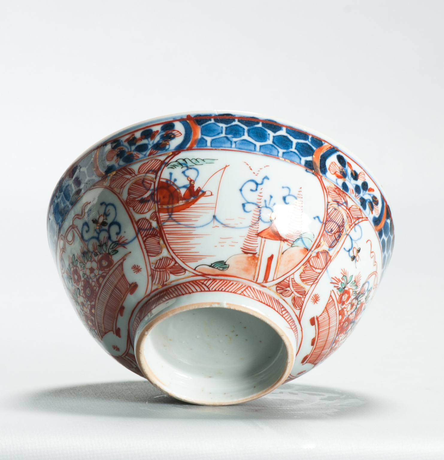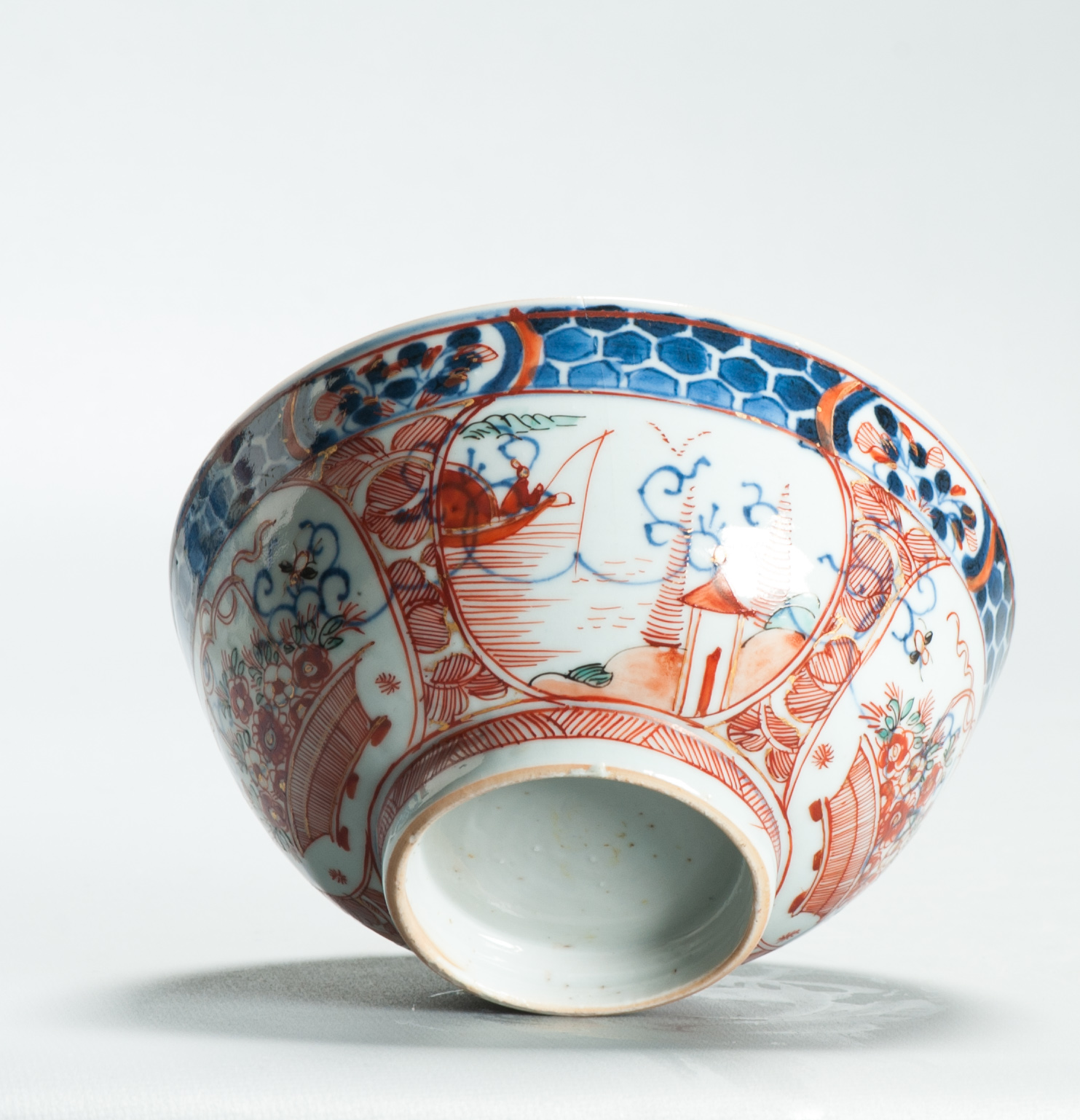 Later decorated in Holland with boats and pagodes.