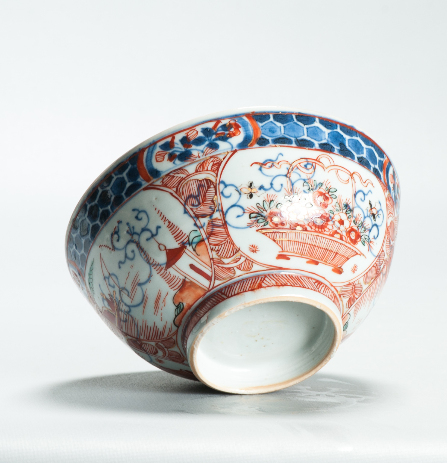 We have a pair for sale also where you can see the original bowl and the later decorated one plus a pair of bowl which are not redecorated in our personal collection:
