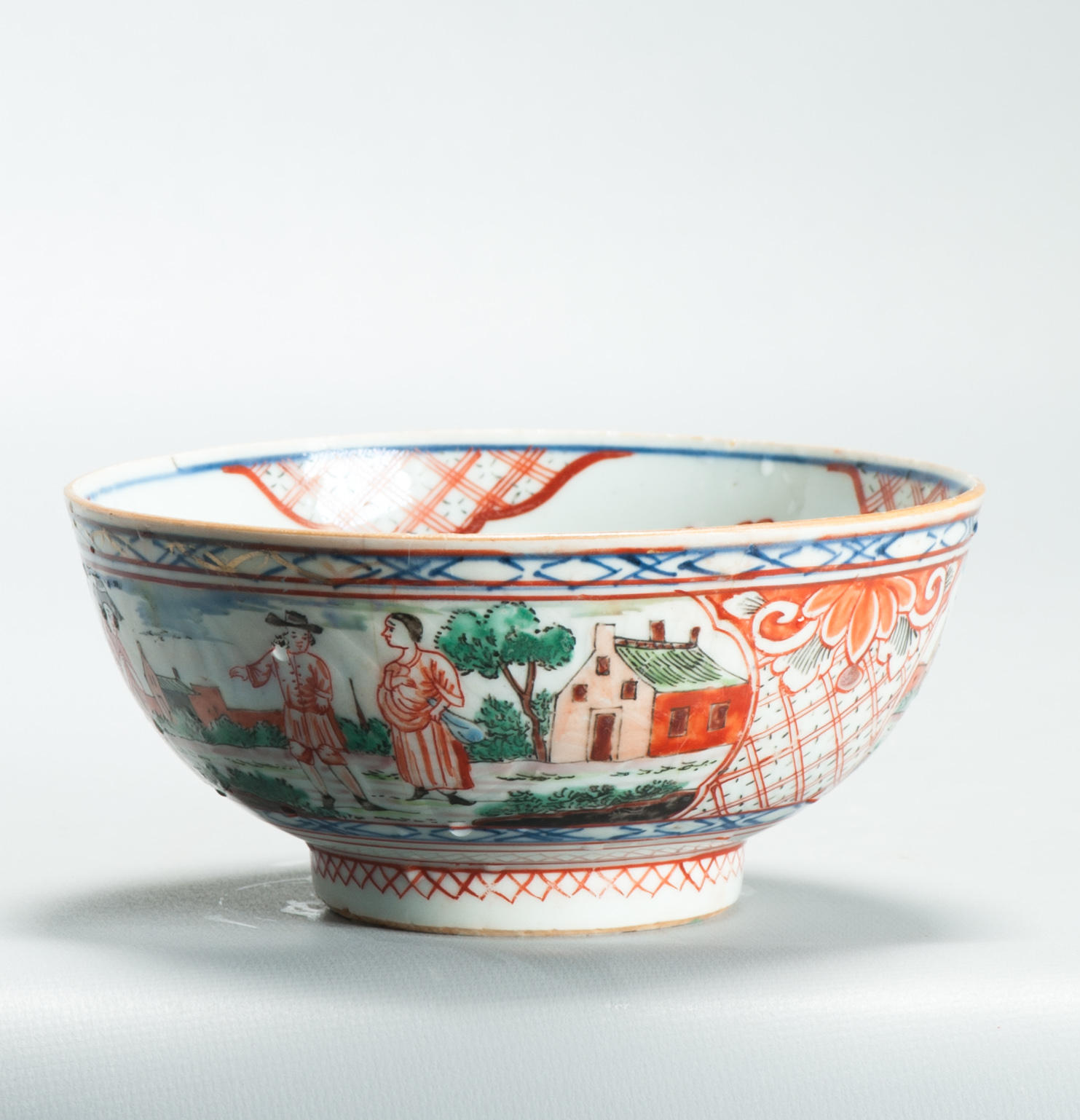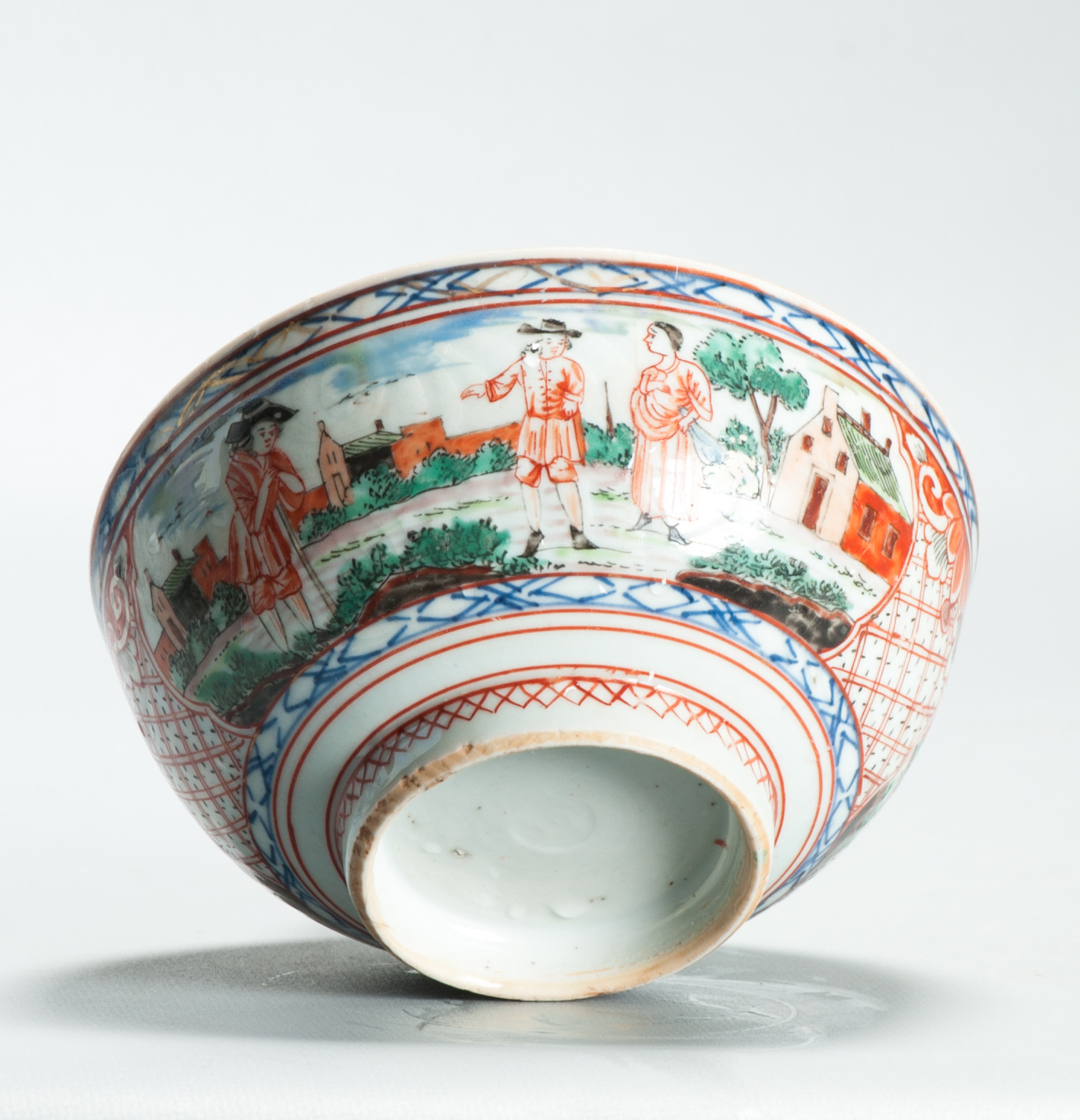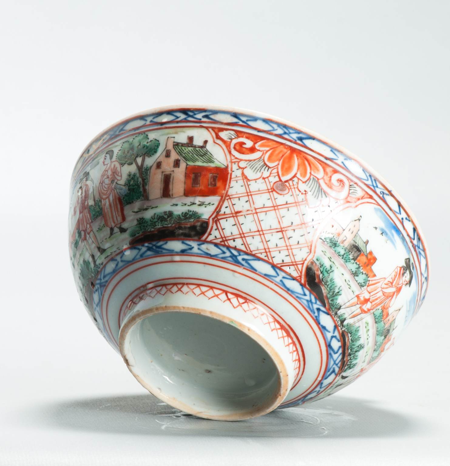 1504 Antique Chinese Bowl with Imari Decoration of a Pastoral Landscape Amsterdam Bont