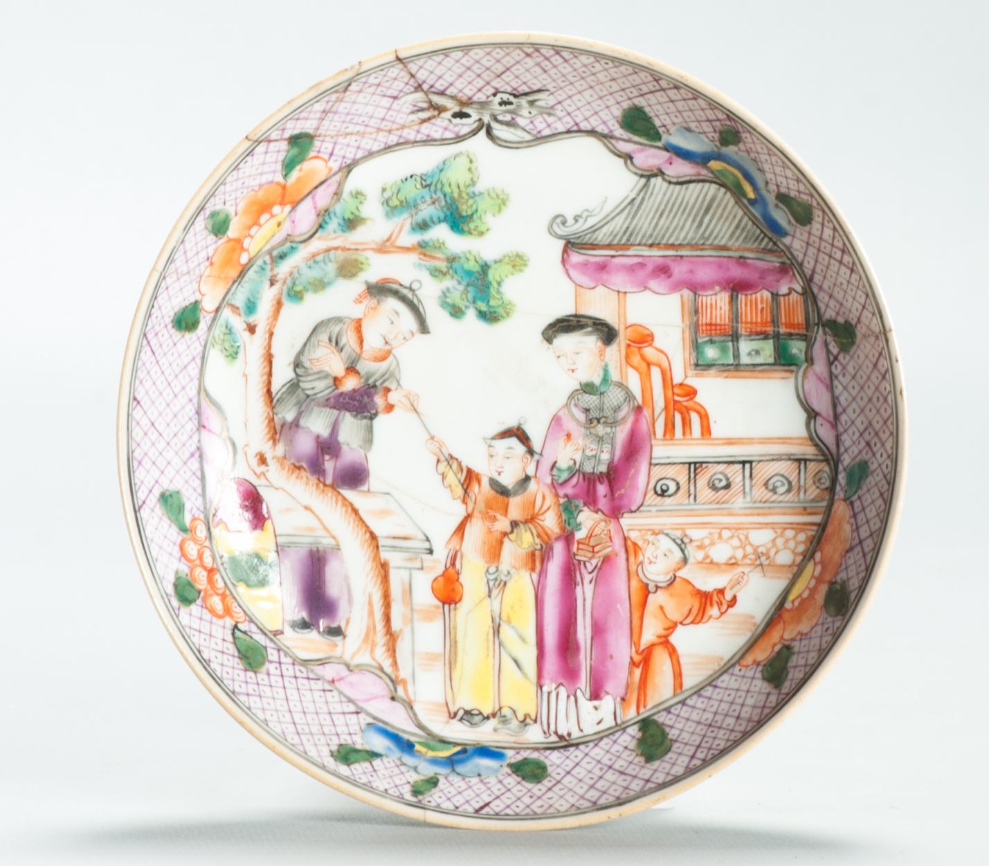 Antique 1740-1760 Chinese Porcelain Dish China Figural Rose Qianlong Period
