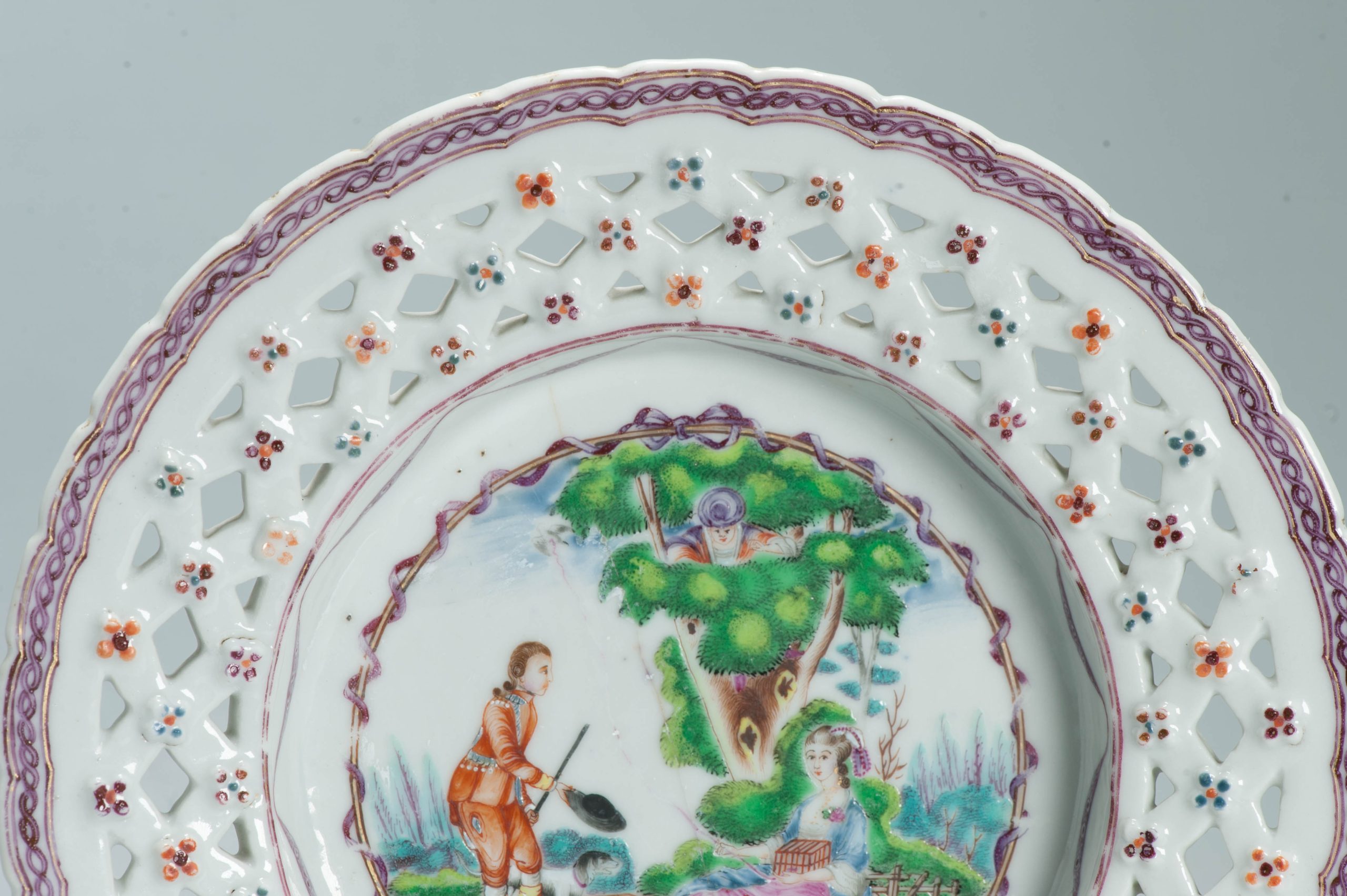Antique 1750-1770 Chinese Porcelain plate Chine de commande ‘Pastoral’ Qianlong