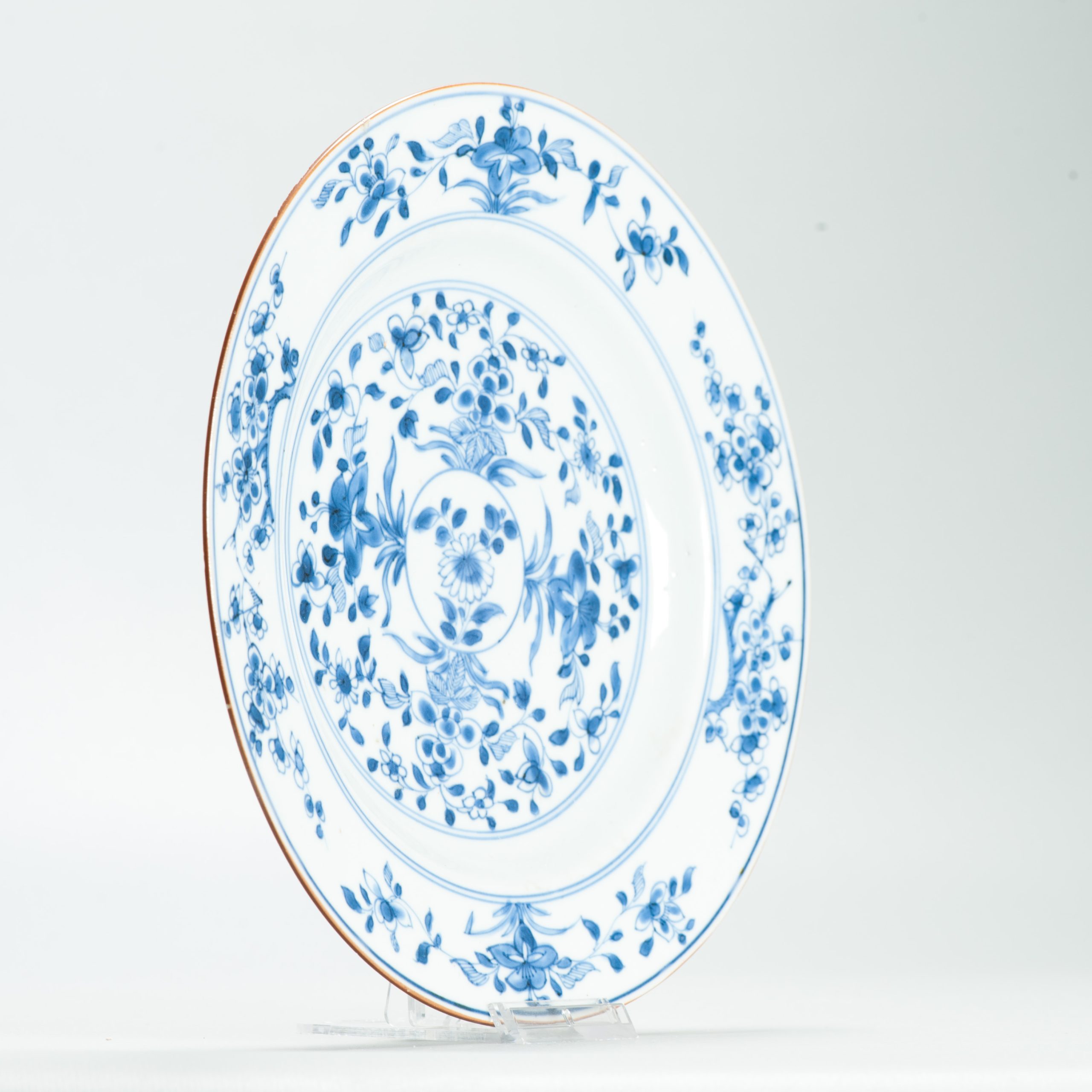 Antique Ca 1720 Chinese Porcelain Kangxi Blue White Plate Flowers Landscape
