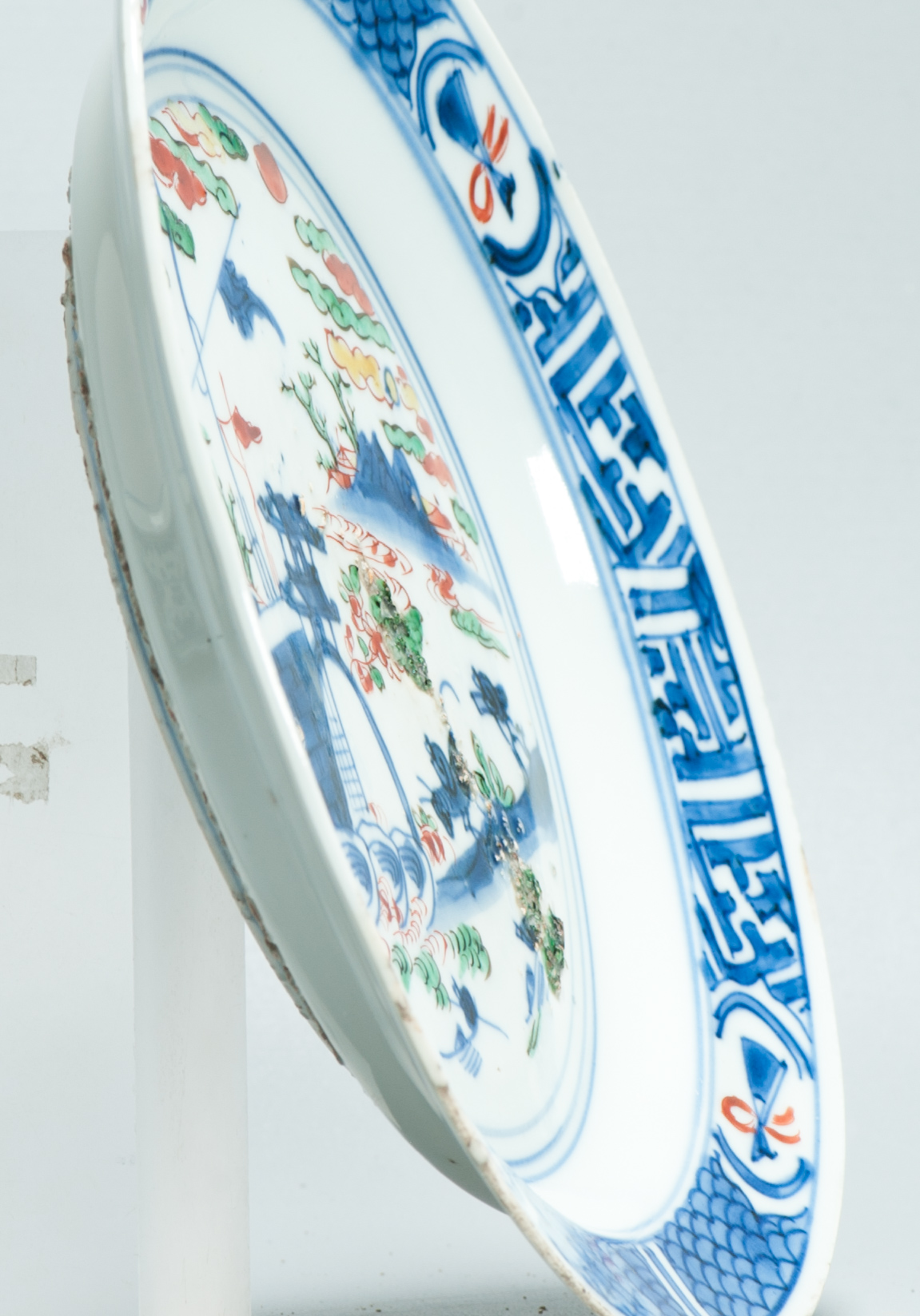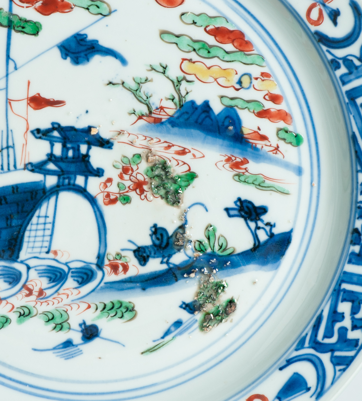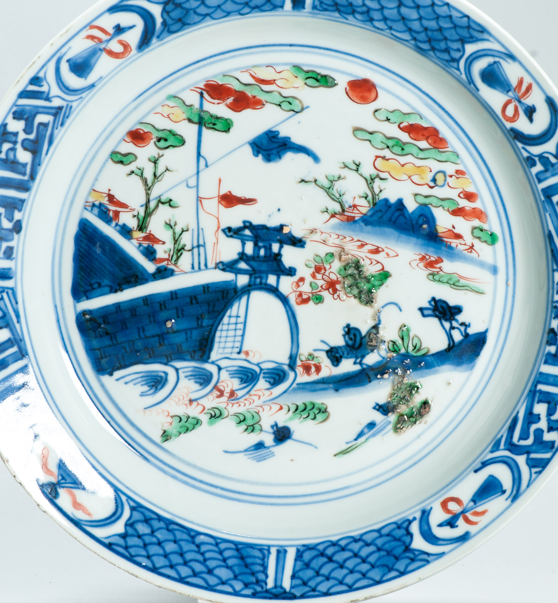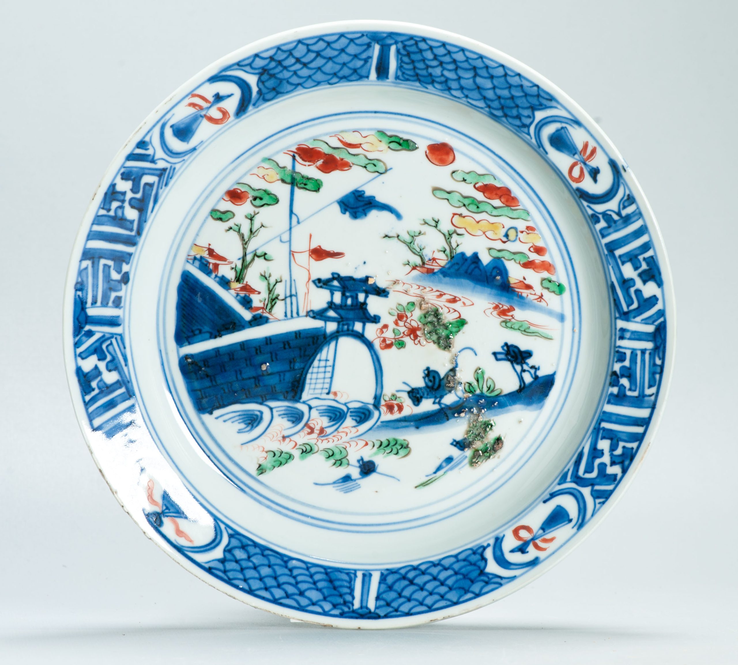 Antique Ko Akae Plate Chinese porcelain Wucai 17th c Tianqi Chongzhen Landscape