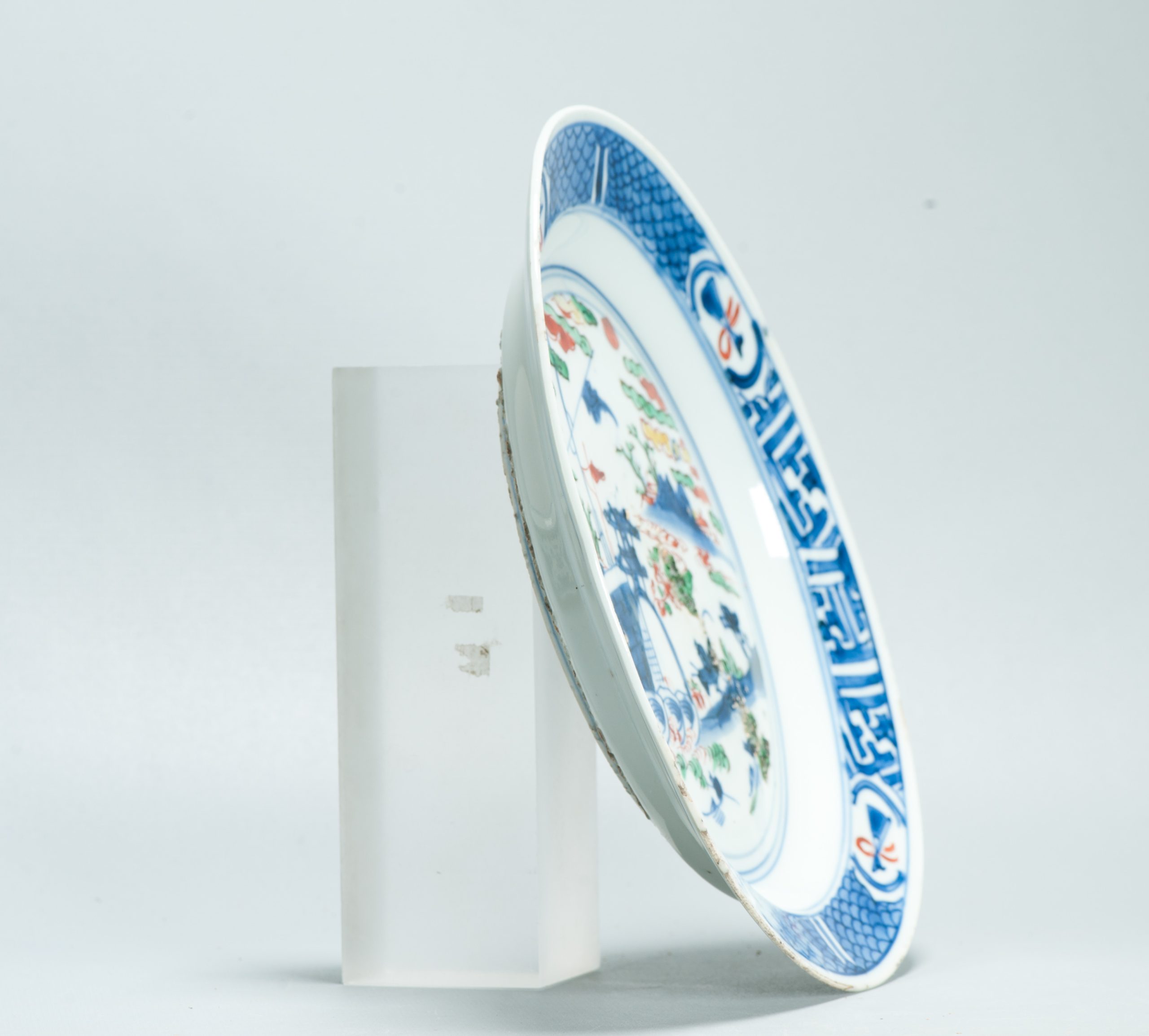 Condition Report: 1 clean hairline from rim, some rimfritting, 1 crackle line at underside rim and some firing grit at front. Size: 22.5x3.2CM DiameterxHeight