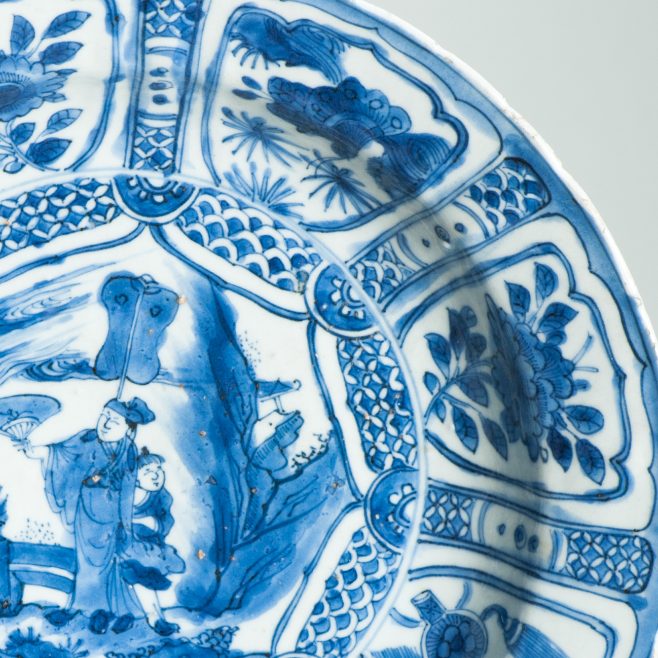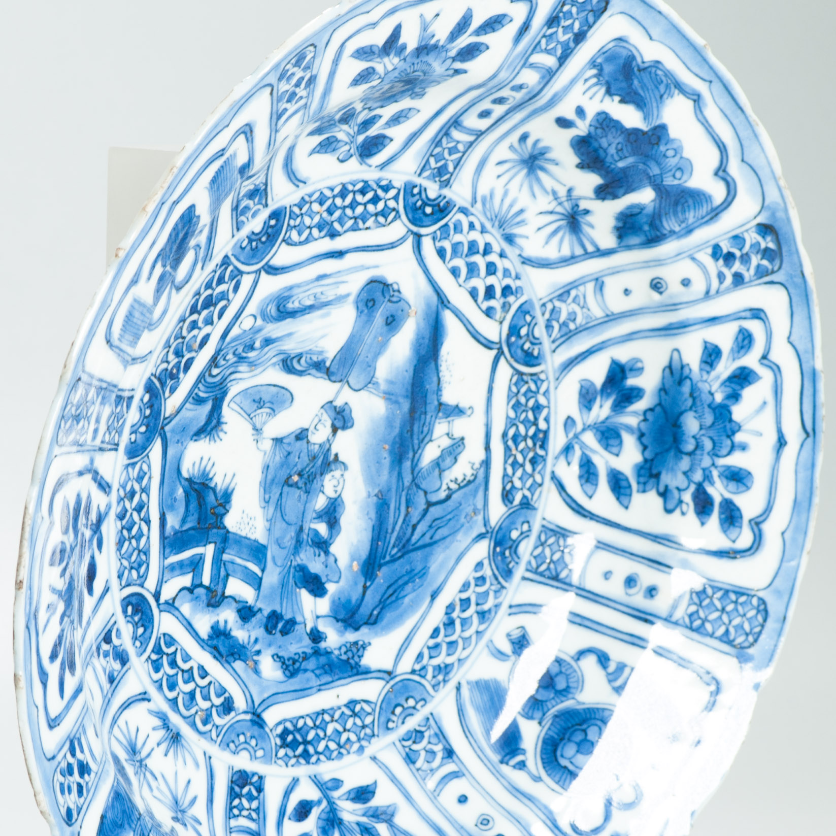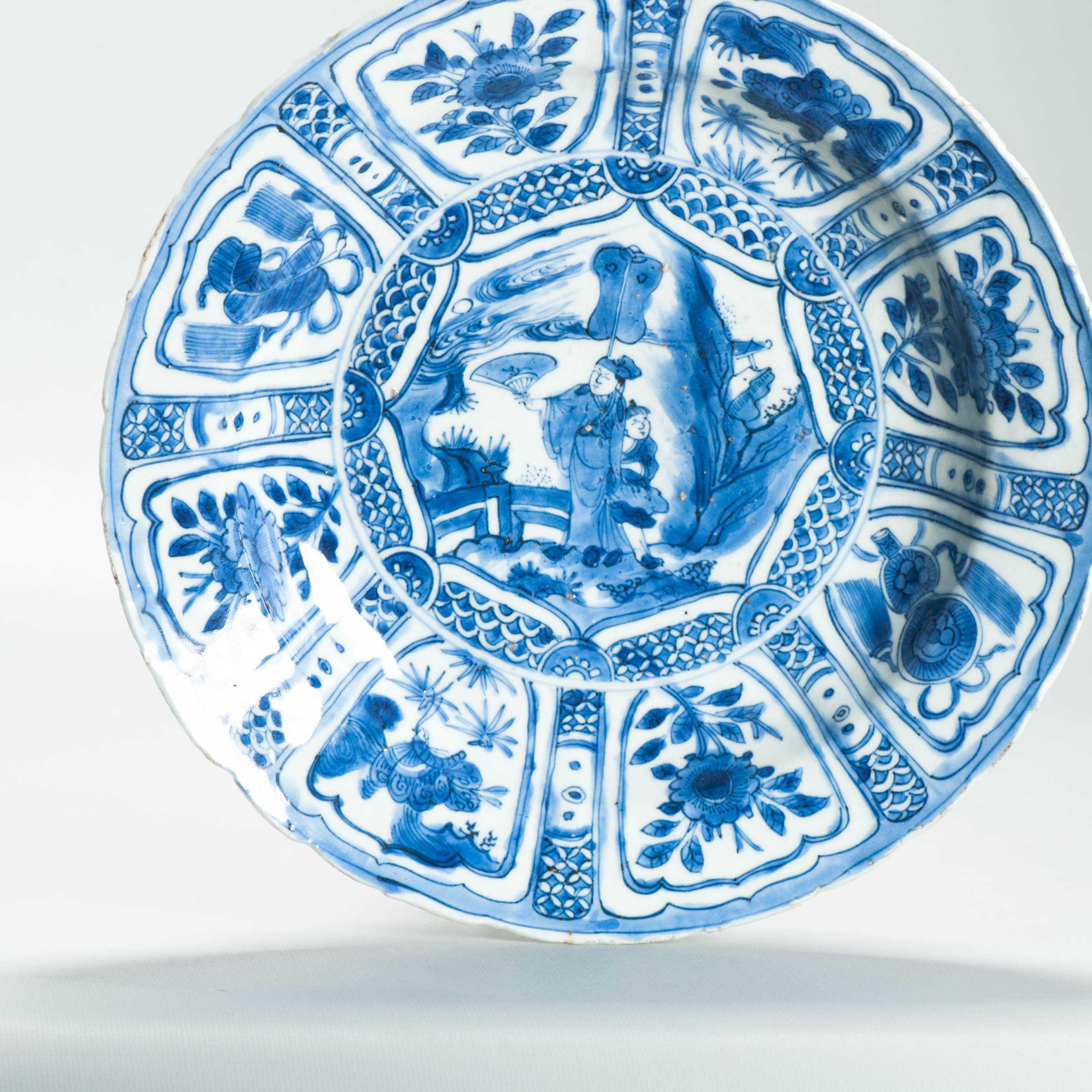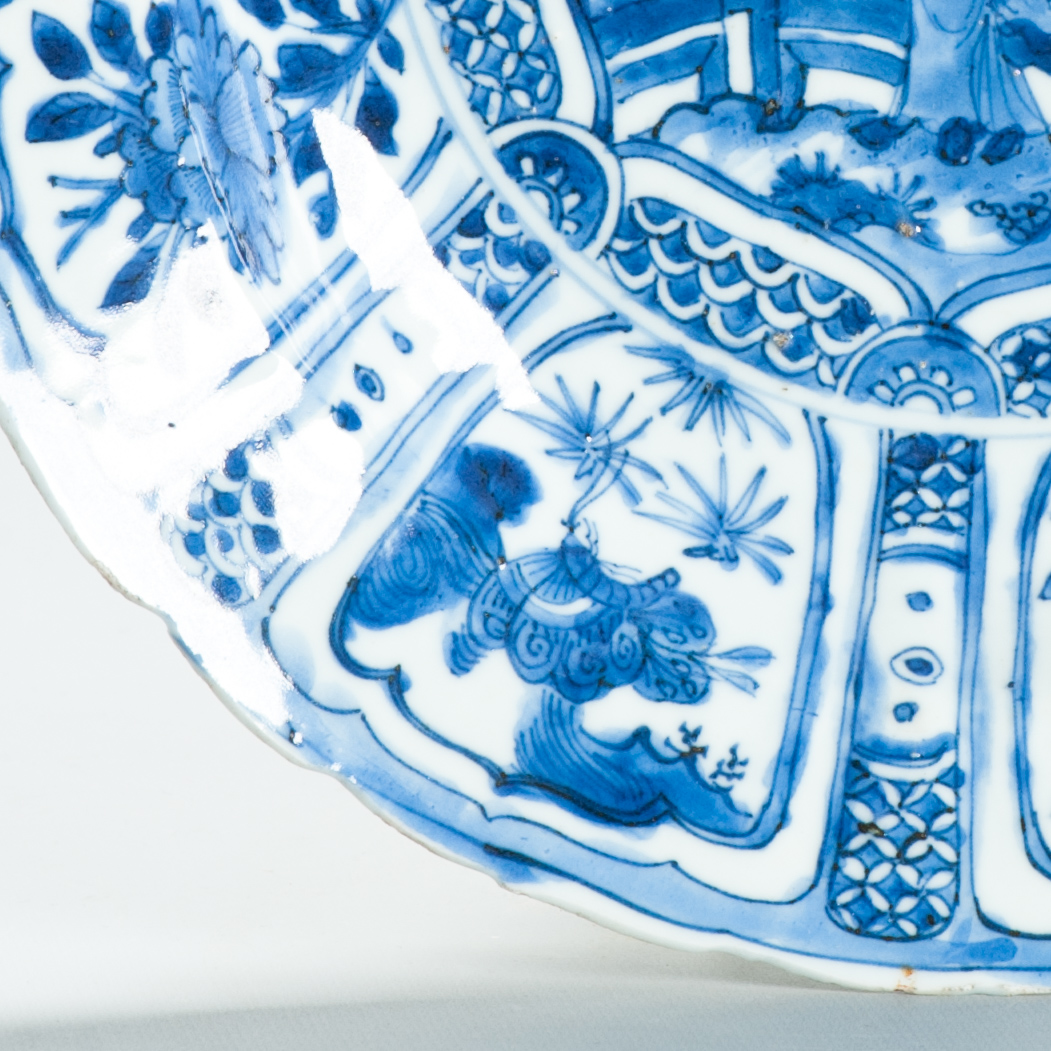 Sharing with you this very nice s blue-and-white Kraak porcelain dishes from the early 17th cc. Circular form with a central panel of a scholar. A very unusual border with butterflies