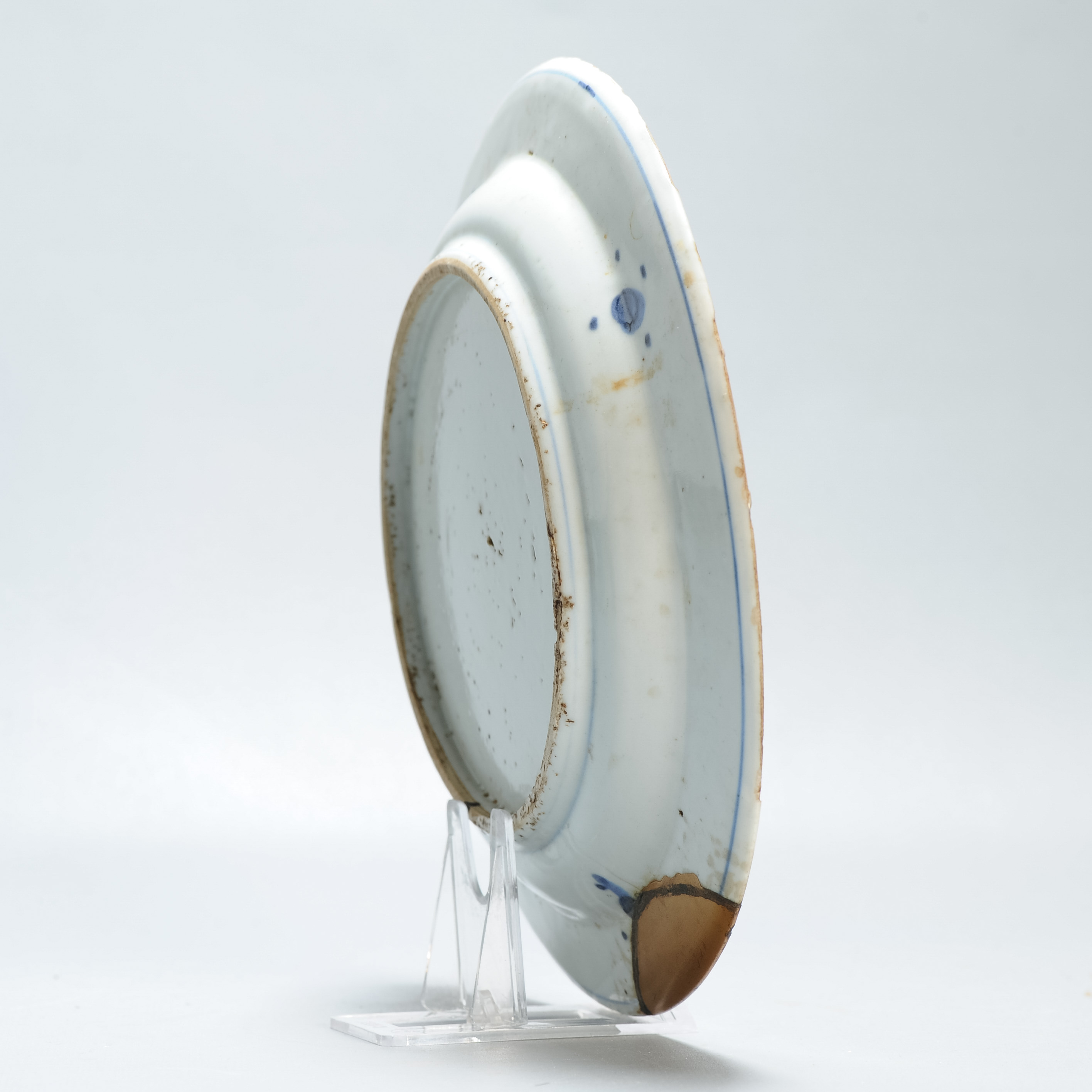 Most of the underglaze blue porcelain wares described above were produced during the later years On the Ming Dynasty (1368-1644), namely during the Tianqi (1621-1627) and Chongzheng (1628-1644) eras. The majority of these wares was produced in the folk ceramic kilns at Jingdezhen. However, they are placed in separate categories from the underglaze blue porcelain ware such as the Gosu-de produced in folk ceramic kilns near Swatow in Fukien Province. Others include the Shonsui and Fuyo-de produced in the folk ceramic kilns at Jingdezhen around the same period. Not only were these objects custom-made according to specific orders from Japan, but they were intermixed with the everyday utensils for the common people in those areas. Therefore, by collecting, studying and researching these Ko-Sometsuke pieces which exist in Japan, we are able to examine one facet of the tea ceremony art of Japan. Further, we are better able to grasp the special features and characteristics of the porcelain works produced in Chinese folk ceramic kilns. It is important that such research be continued to clarify these facts.