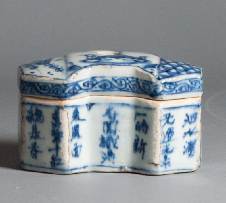 Antique Ming Period Kosometsuke Poem Go Players Cricket Box Chinese Porcelain