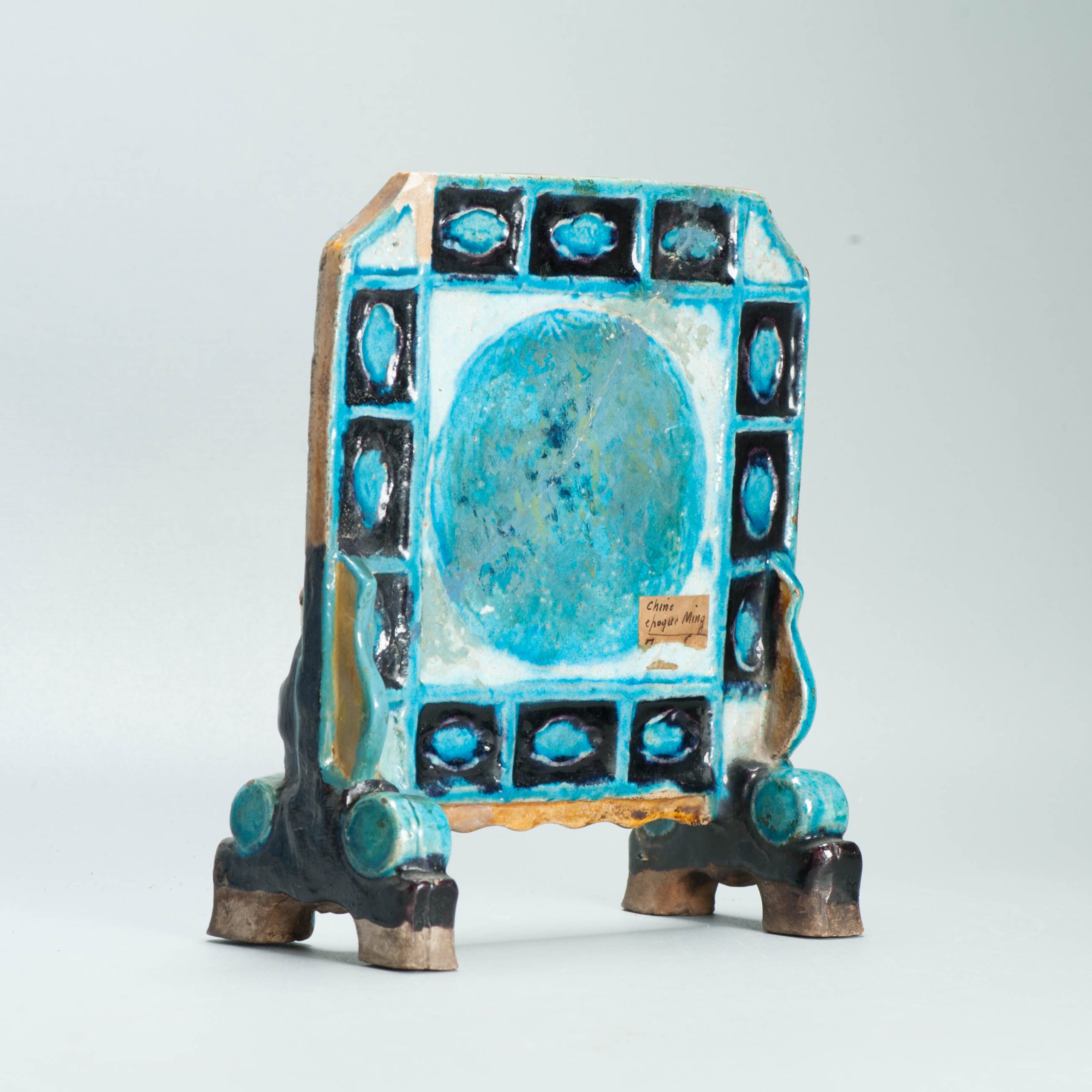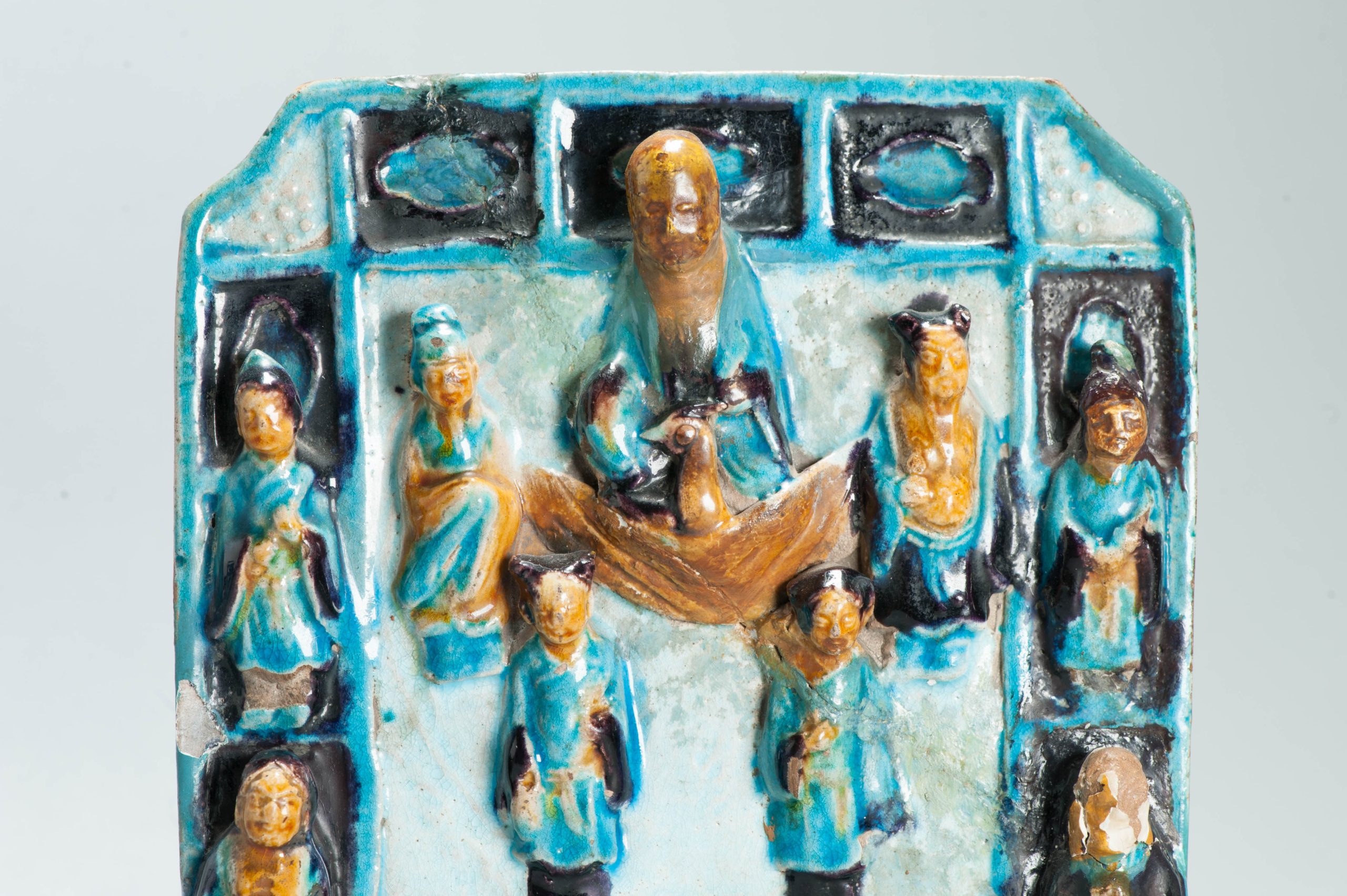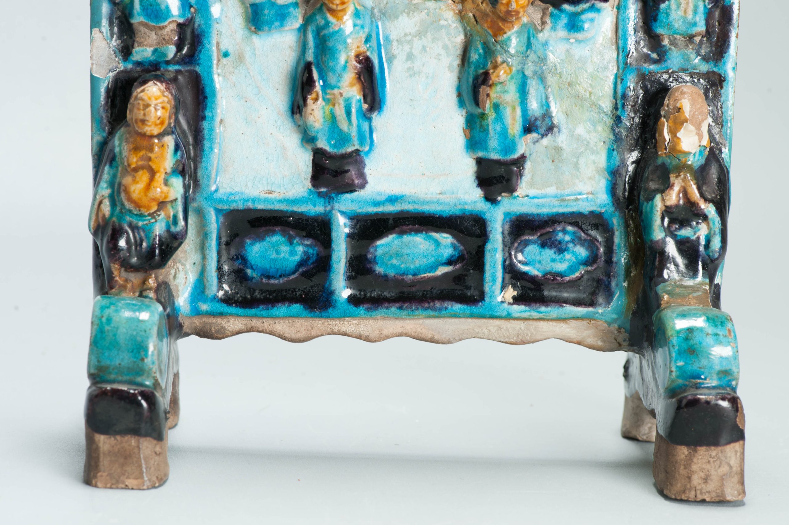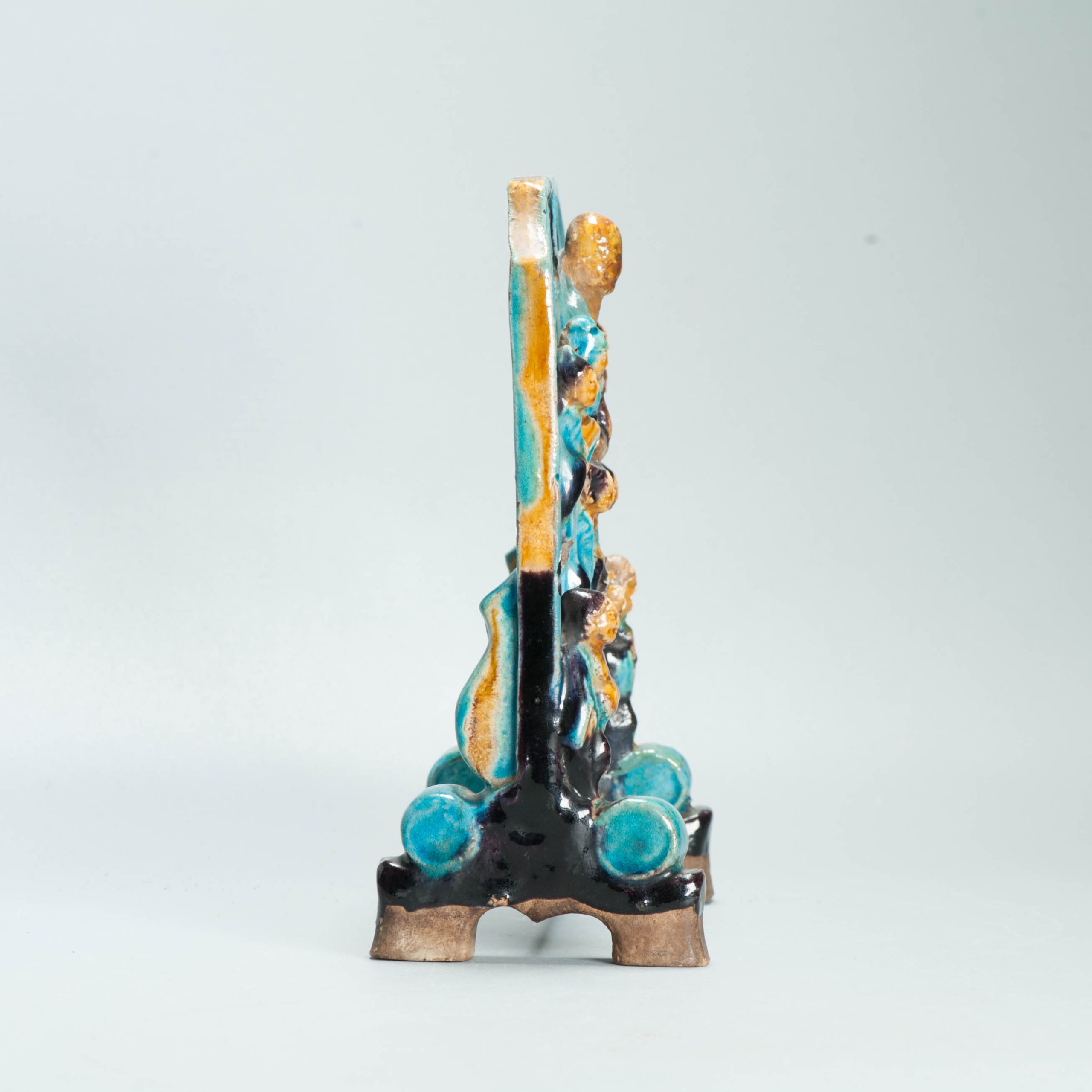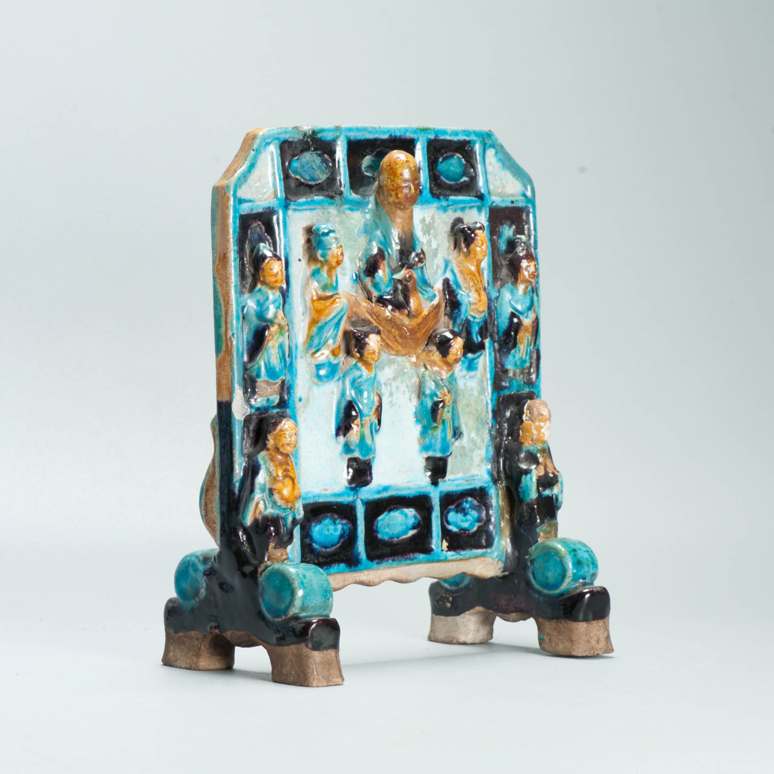 Ming period Fahua Pottery Chinese Table screen Scholar Eight immortals Shoulao